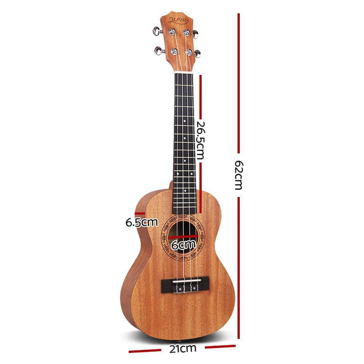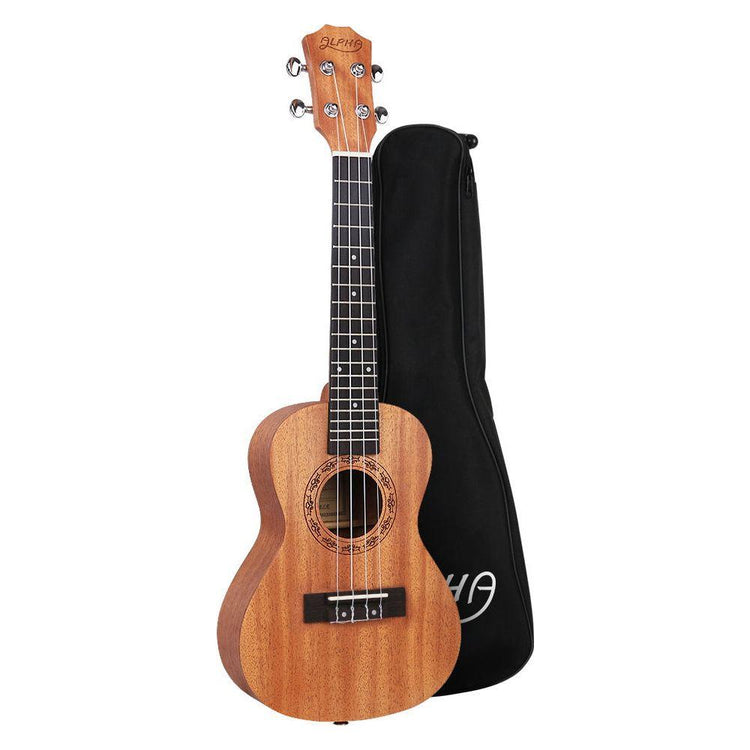 It is cute and handy. Easy to learn and play. And sounds great too. Our Alpha Ukulele promises to deliver hours of resounding fun as you sing and play your favourite tunes with wild abandon. Crafted from rich tone woods for a matt natural finish, our Ukulele features meticulous craftsmanship and quality components that others place a premium on. Such as the Mahogany top, back and sides, contoured back, rosewood fretboard, reliable tuners, bone nut and saddle, premium nylon strings, decorative soundhole rosette and pre-installed strap pins on both ends of the body. Also included is a bonus carry bag and tuner to bring your music where it matters most. Among friends and an appreciative audience. So quit procrastinating and start your musical journey with the mesmerising sounds of the Alpha Ukulele. Get yours today.