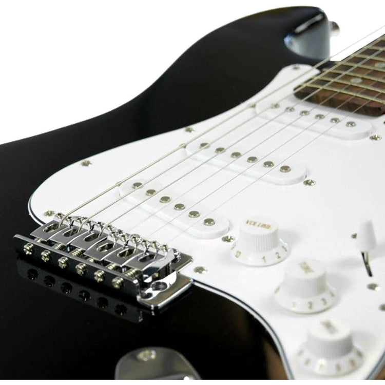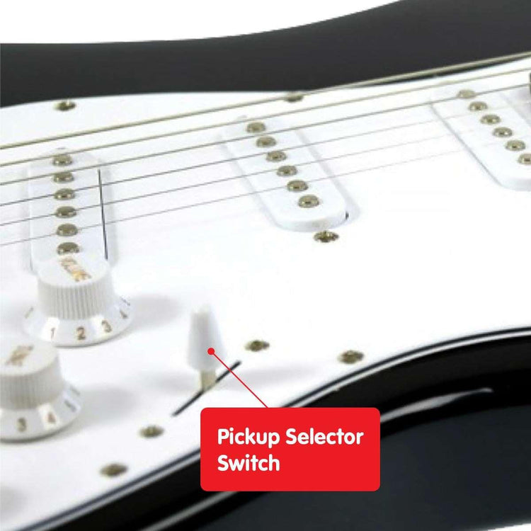 This A-grade, full-sized Karrera electric guitar has a fully adjustable bridge, tone and volume controls, a 3-layer pickguard, and a removable whammy bar. It's ideal for teens, students, or anyone who wants to hone their musical talents further. Play alone, start a band, or make your own music - with this electric guitar, the possibilities are endless!