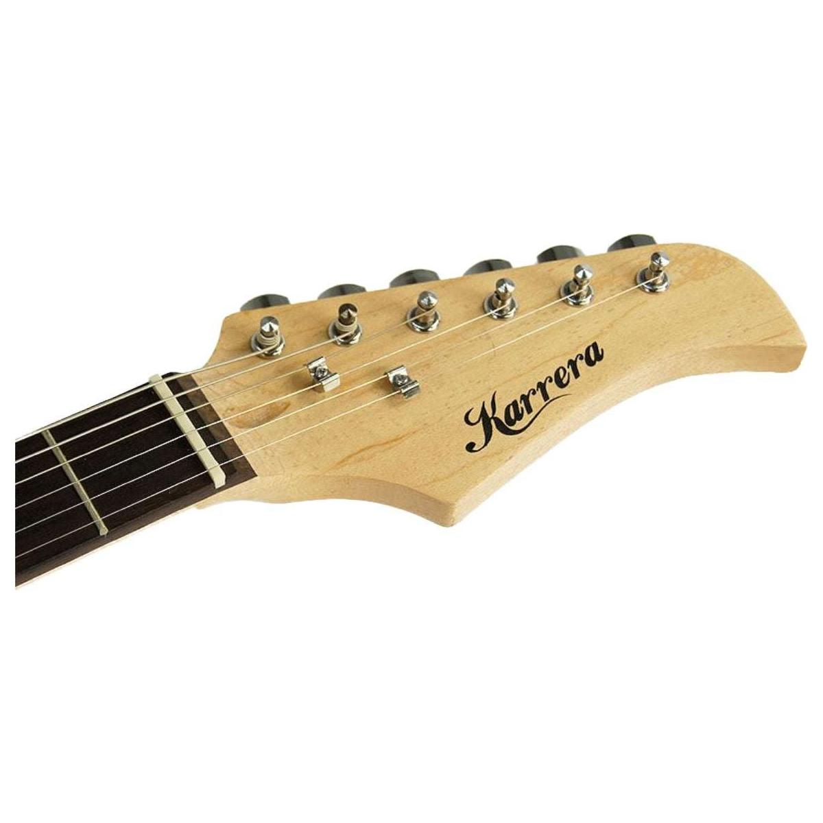 This A-grade, full-sized Karrera electric guitar has a fully adjustable bridge, tone and volume controls, a 3-layer pickguard, and a removable whammy bar. It's ideal for teens, students, or anyone who wants to hone their musical talents further. Play alone, start a band, or make your own music - with this electric guitar, the possibilities are endless!