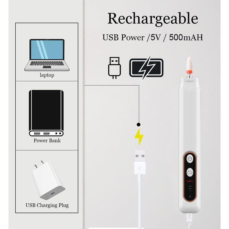 - Adjustable speed and intensity for a customizable nail grooming experience