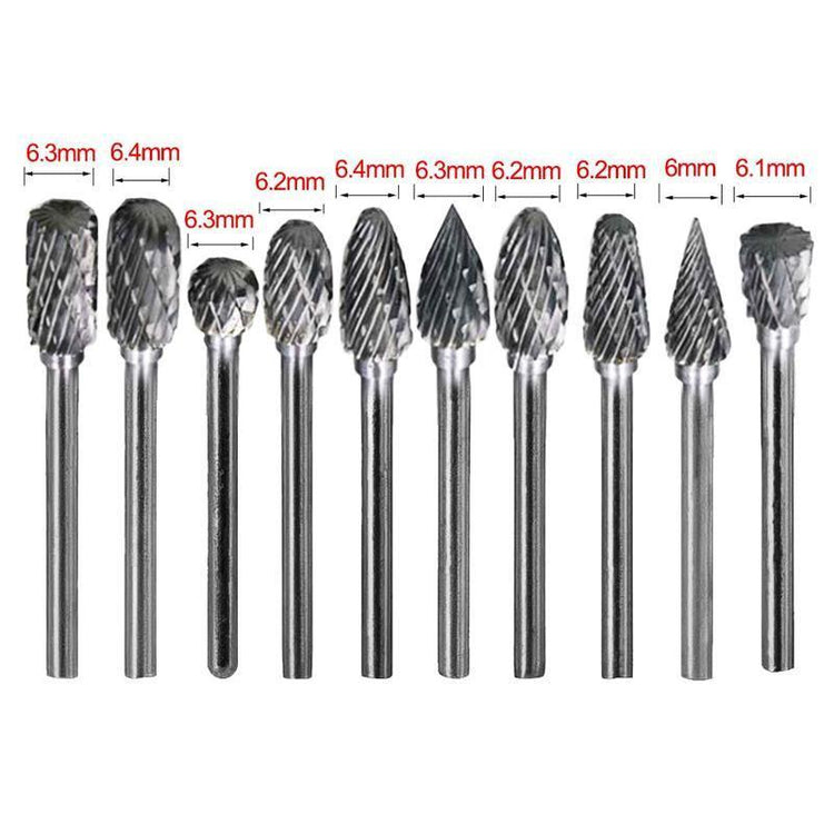 10 × Tungsten Carbide Rotary Burrs
