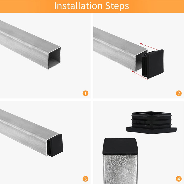 ◆【Easy to Use】 - These square tube end cap plugs would offer a neat safe finish to tube ends and prevent dirt and dust ingres. It's easy to use that no tools needed. You are able to install by hands within minutes. They serve as a long-lasting solution for many household or outdoor projects.