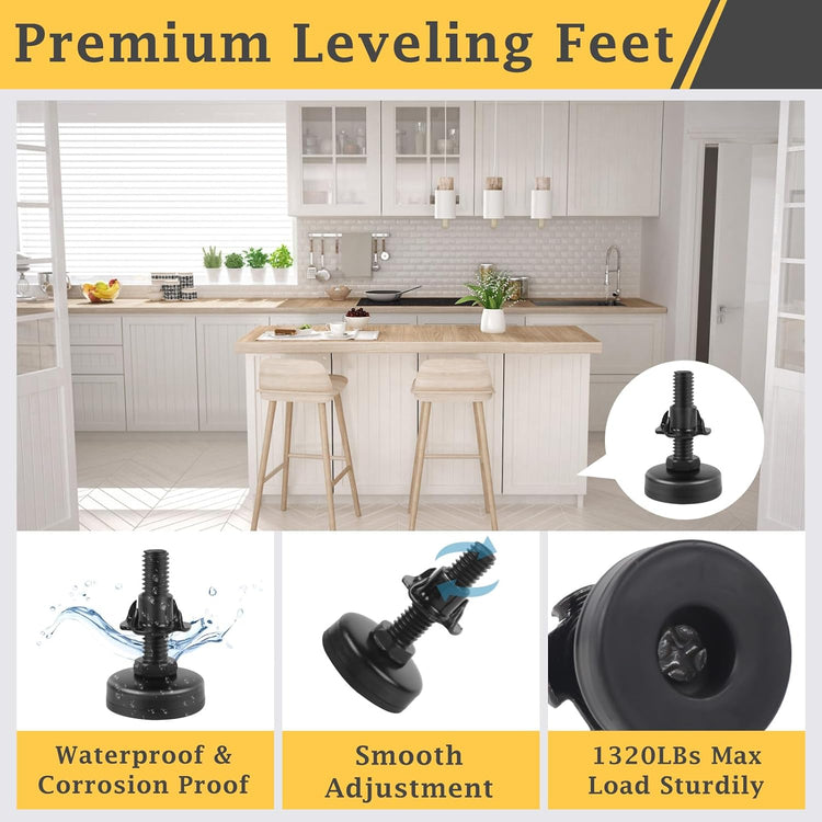 1320LBs Max Support: The furniture leveling feet and t-nuts are made from premium steel with 8 pcs of thickened felt, max support weighs 1320LBs; Use adjustable leveling feet to balance furniture; Keep the floor from scratching, and reduce noise