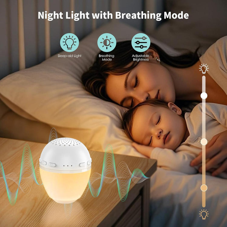 • Night Light with Adjustable Brightness: Features two night light modessteady light (adjustable brightness) and soothing breathing lightto create a calming sleep environment for kids and adults.