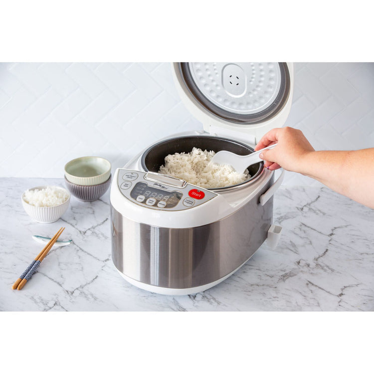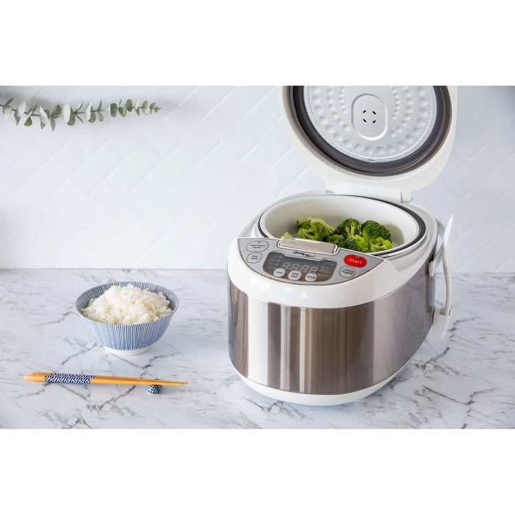 This 5L Rice Cooker offers fuzzy logic technology and can cook any versatile texture of rice from sushi-prepared rice all the way to congee and mixed grain rice.