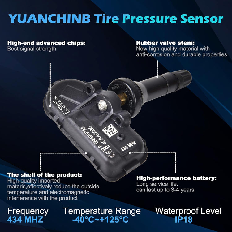 68249197AA TPMS Sensor Dodger RAM, 4-Pack 434MHz Tire Pressure Monitoring System Sensors Compatible with 2014-2018 Dodge Ram 1500 2500 3500 Jeep Cherokee Replaces 68239720AA 68157568AA