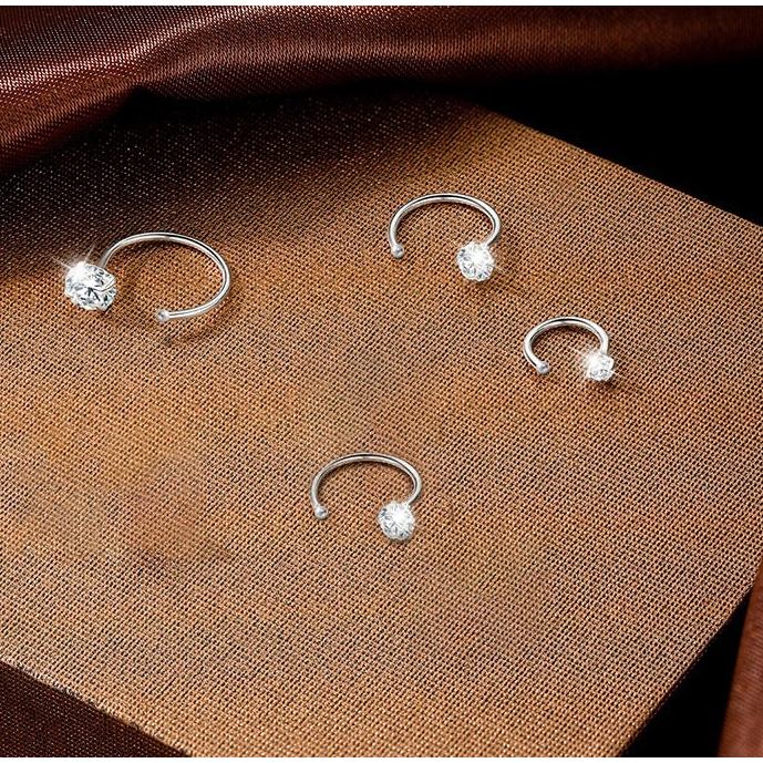 Elevate your everyday style with this exquisite set of four pairs of C-shaped hoop earrings. Combining the timeless sparkle of a classic solitaire stud with the chic, modern silhouette of a half-hoop, these earrings offer a sophisticated and versatile accessory for any occasion. Their minimalist design provides a touch of light luxury that is perfect for both casual and formal wear.
