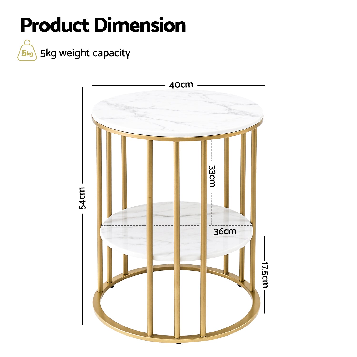 Artiss Coffee Table 2-Tier Round Marble Effect White&Gold