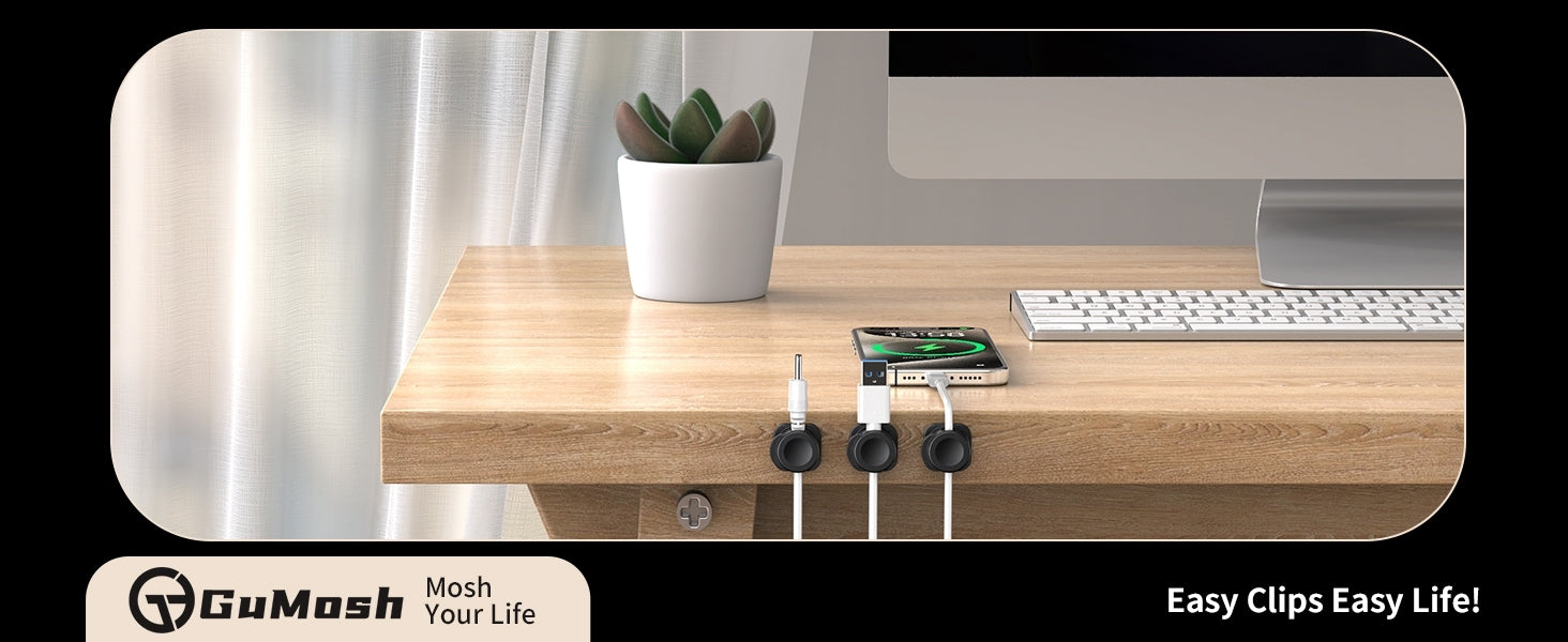 Unlike ordinary 3M adhesive tapes, our cable holder organizer utilizes the acrylic adhesive that is stronger and leaves no residue when removed. Just simply stick the wire holder organizer to any smooth and dry surface, such as wooden table, glass, or ceramic tiles, etc. The clear adhesive pads are eco-friendly and won't damage your desk, nightstand or walls.