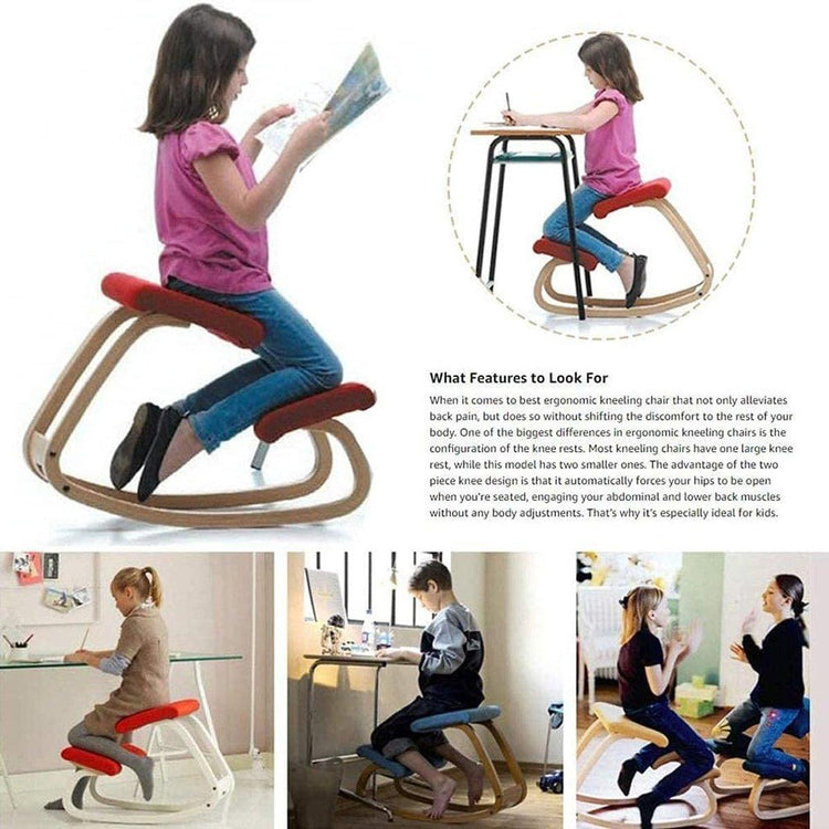 Struggling with discomfort from poor sitting posture? The Ergonomic Kneeling Chair is designed to guide you towards a correct and comfortable sitting position, ensuring your body remains in a natural and upright posture. This helps alleviate pain associated with prolonged sitting. The unique curved base design allows the chair to rock back and forth, maintaining balance and providing dynamic motion. Constructed from premium solid wood, this ergonomic chair is durable and supports up to 150kg. The seat and knee pads are cushioned with elastic sponge and covered in skin-friendly fabric, enhancing your comfort. Perfect for various settings such as home and office, this chair is a practical solution for any sitting activity.