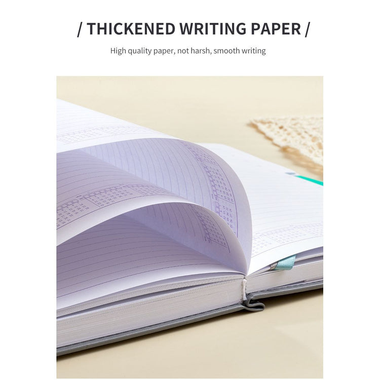 - Premium & Practical Design: The planner features a durable and stylish two-tone PU leather cover with a convenient front pocket for cards or notes. An elastic closure band, a pen loop, dual ribbon bookmarks, and an expandable back pocket add layers of practical functionality.