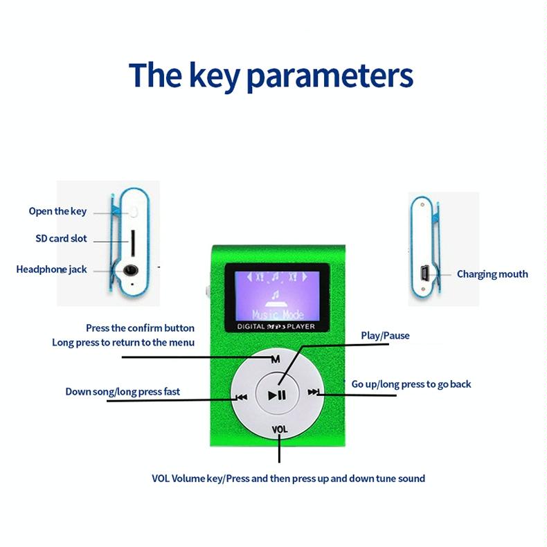 • 1 x Metal Mini Mp3 Player With Screen Earphone+Cable