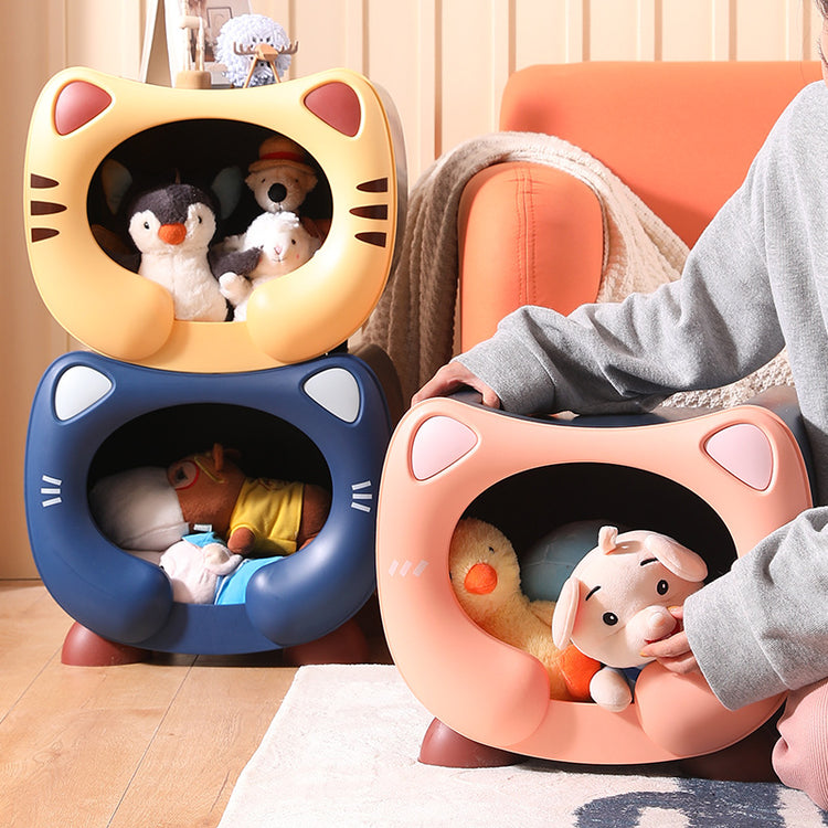 Cute Cat-Themed Stackable Storage Bin - Multi-purpose Pet Bed & Toy Organizer