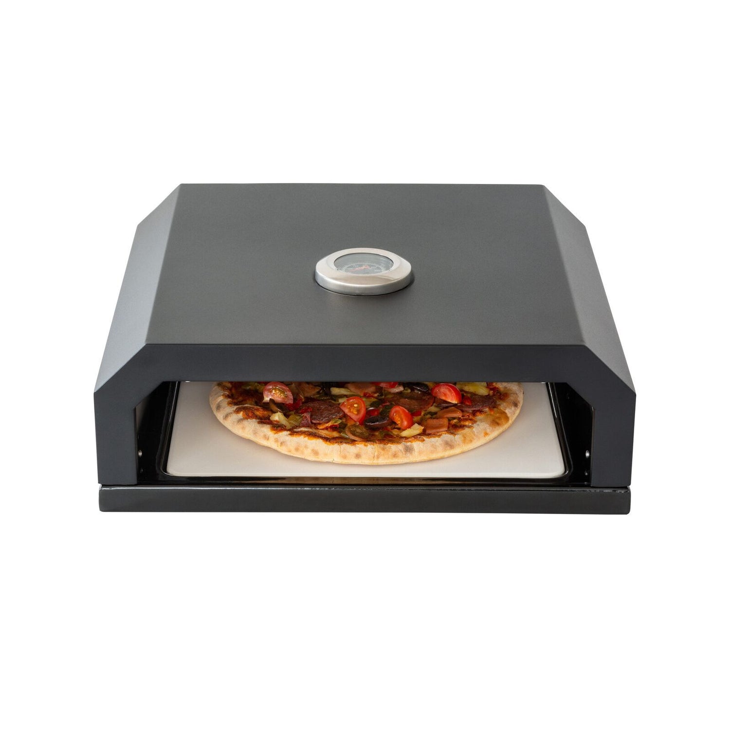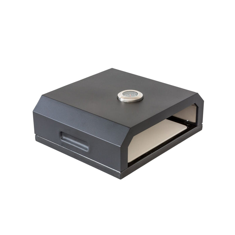 This durable steel box features a built-in thermometer so you can easily monitor the temperature inside the oven, and it comes with a pizza stone to help distribute heat evenly and create a crispy crust. Simply place the box on your barbecue grill, preheat to high heat, add your pizza, and cook for 5-7 minutes for perfectly cooked pizzas every time.