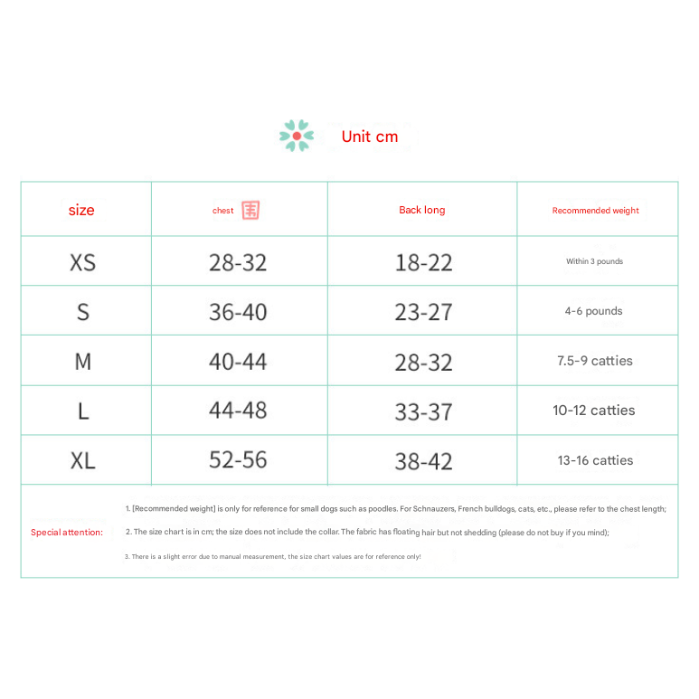 Please measure your pet and refer to the size chart in the details image to ensure the perfect fit. Sizes vary by breed and weight, so we recommend checking carefully before purchase.