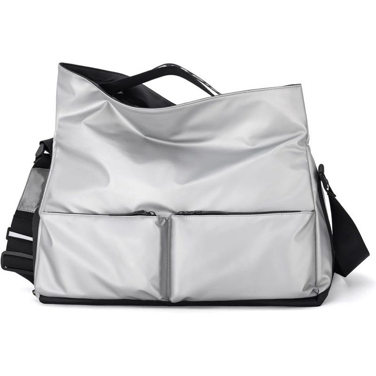 Silver Large Capacity Waterproof Tote Bag - Convertible Crossbody Messenger for Gym, Travel & Work