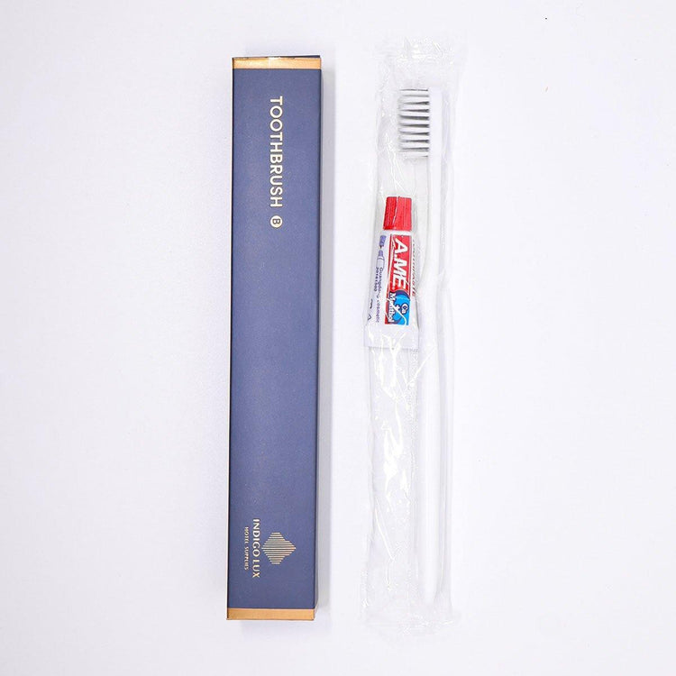 This hotel toothbrush and toothpaste set offers a convenient and hygienic solution for guests. Designed specifically for hospitality use, the set includes a soft bristle toothbrush and a small tube of toothpaste, making it perfect for short stays. Each toothbrush is individually wrapped, ensuring cleanliness and ease of distribution. With its sleek design and soft bristles, this set provides a comfortable and thorough cleaning experience for your guests, enhancing their stay with a touch of personal care.
