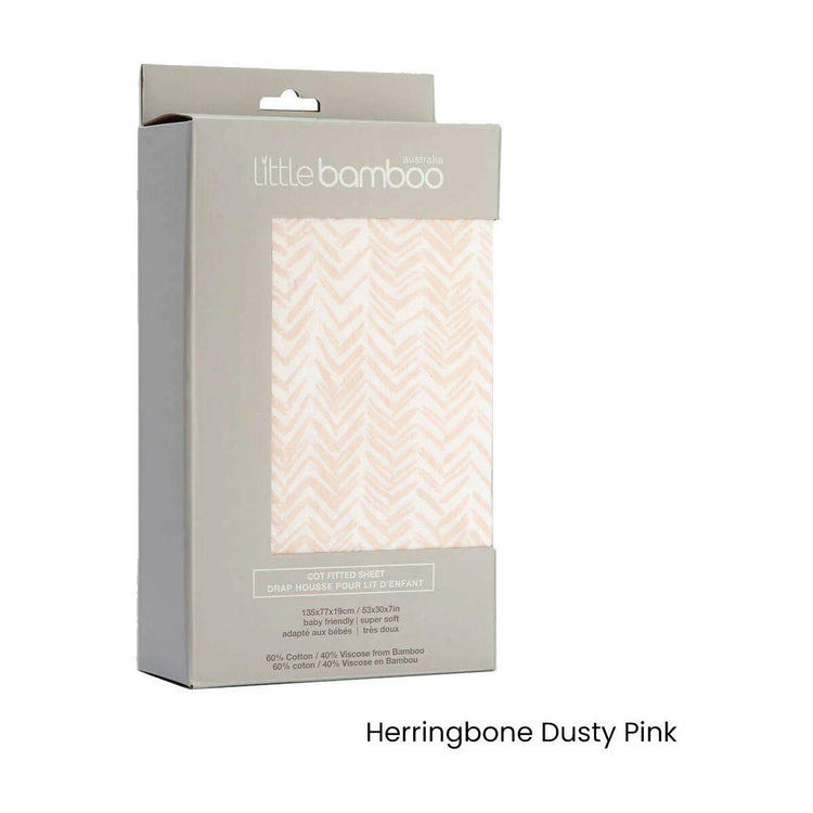 Little Bamboo Jersey Fitted Sheet Cot Size Herringbone Dusty Pink