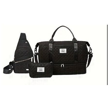 • Complete 3-Piece Set: Includes a large weekender duffel bag, a matching crossbody sling bag, and a small zippered pouch - perfect for organized travel.