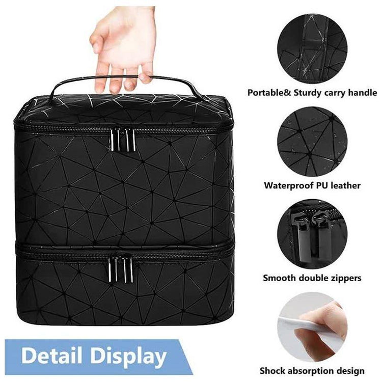 This cosmetic bag is the perfect blend of practicality and style, designed to safely store your nail polish, cosmetics, and beauty tools. Its portable design and durable material make it a must-have for beauty enthusiasts and professionals alike.