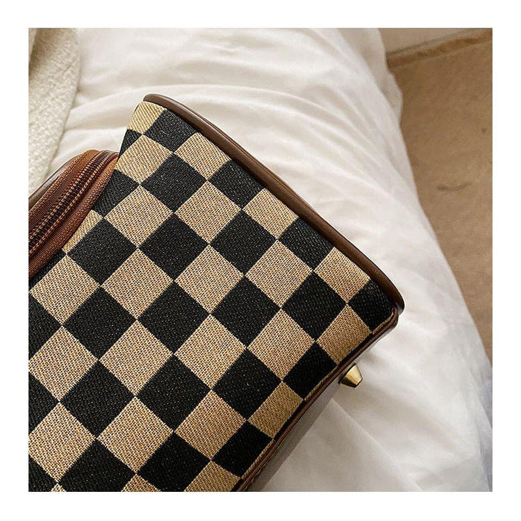 - Material: High-quality fabric with a stylish checkered pattern and durable zipper closure