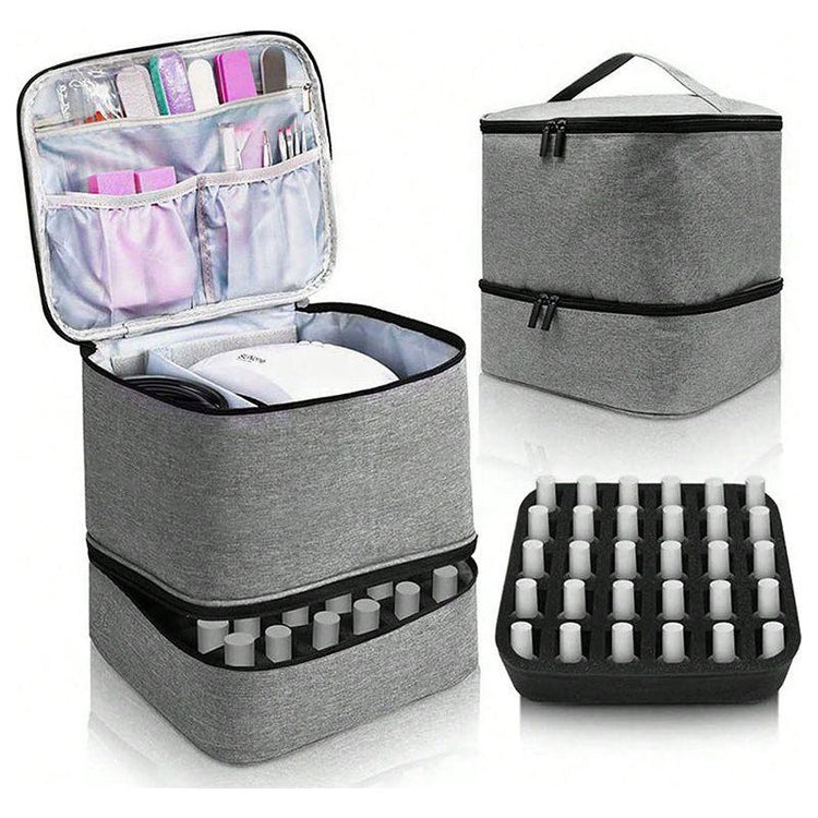 Keep your cosmetics, nail polish, and beauty accessories neatly organized and protected with this stylish and functional cosmetic bag. Featuring a spacious interior and convenient dividers, it is perfect for storing your nail care products and other beauty essentials, while being portable and easy to carry wherever you go.