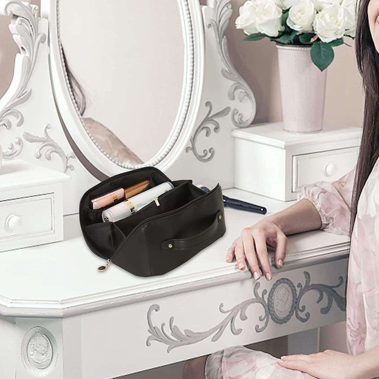 Travel makeup bag is Portable and Lightweight. Convenient and Durable Handle Design, easy to carry when traveling or on business and very suitable for storage of cosmetics in suitcase.