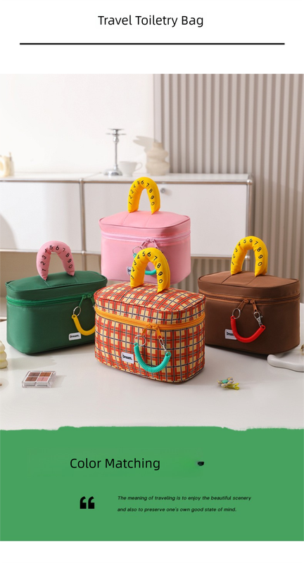 Keep your beauty essentials organized and stylish with this compact yet spacious makeup bag, designed for women on the go. Crafted from durable Oxford fabric, it combines practicality with a cheerful plaid design—perfect for travel, daily use, or as a thoughtful gift.