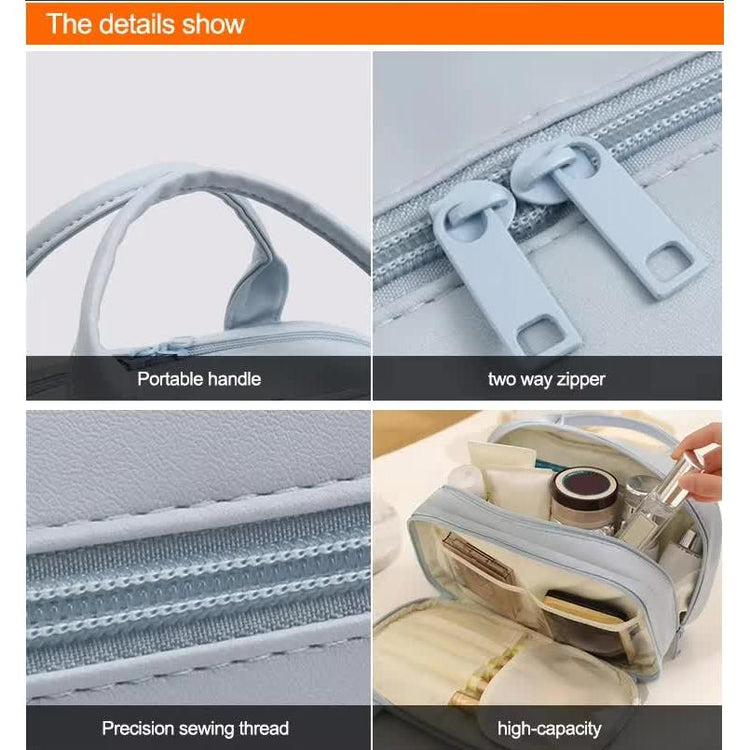Perfectly designed for both short trips and extended travel, this large-capacity cosmetic bag is your ideal organizing companion. Featuring a soft PU leather exterior, it provides a luxurious touch while ensuring durability and water resistance. The multiple compartments make organizing your essentials a breeze, and the sleek design adds a touch of elegance to your journey.