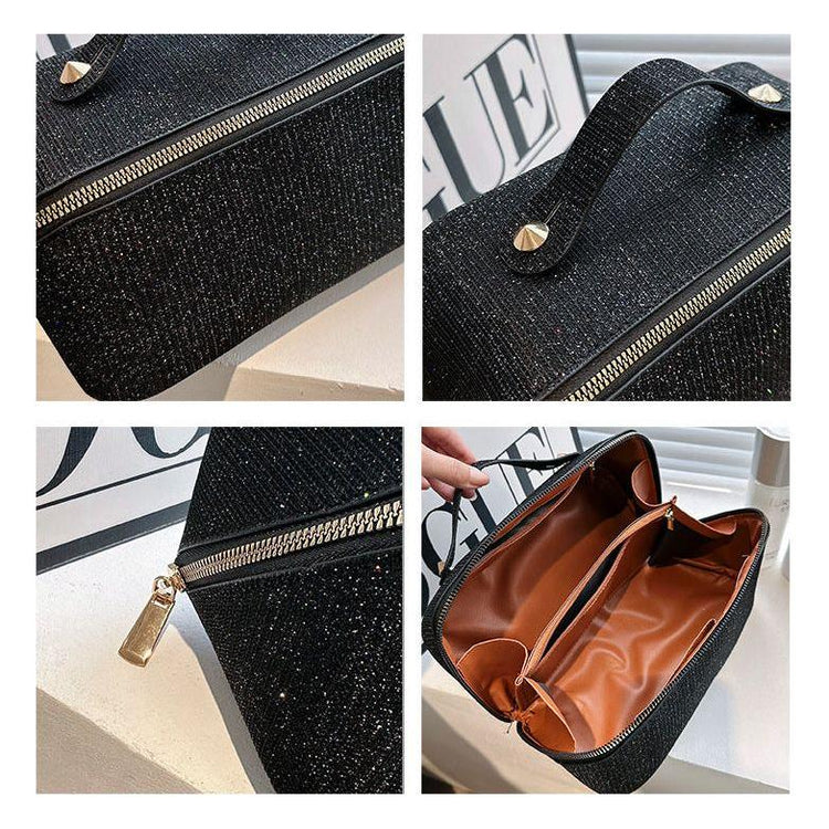 - Stylish and Durable: This sleek cosmetic bag is made from premium glitter fabric, offering a chic and sparkly appearance while maintaining durability for daily use.