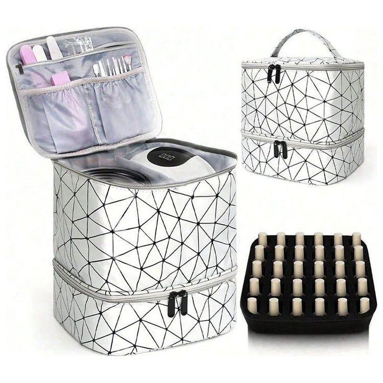 This cosmetic bag is the perfect blend of practicality and style, designed to safely store your nail polish, cosmetics, and beauty tools. Its portable design and durable material make it a must-have for beauty enthusiasts and professionals alike.