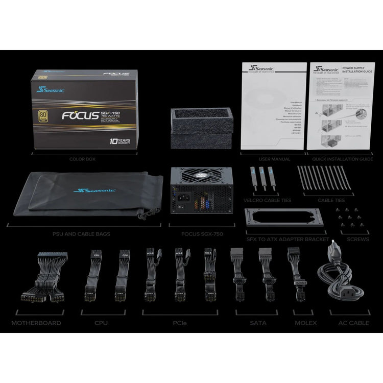 The new line of Seasonic's FOCUS SGX is versatile in its application and powerful with a small footprint. It is a standard SFX unit, measuring at 125 mm (L) x 100 mm (W) x 63.5 mm (H). The FOCUS SGX (2021) is shipped with an SFX to ATX adapter bracket in the box, which allows the power supply to be mounted not only in the SFX form factor chassis, but also a standard ATX chassis should the user prefers to reserve more space for airflow inside the PC case. The Seasonic hybrid fan control is always enabled to optimize the cooling according to necessity.