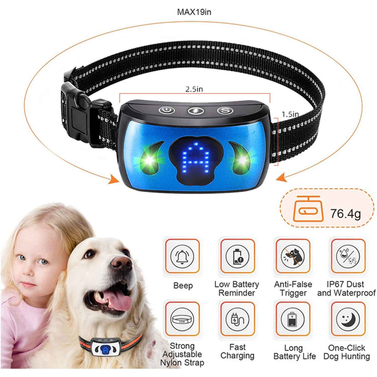 The collar features an inbuilt USB magnetic rechargeable battery, and waterproof for rainy or snowy conditions.