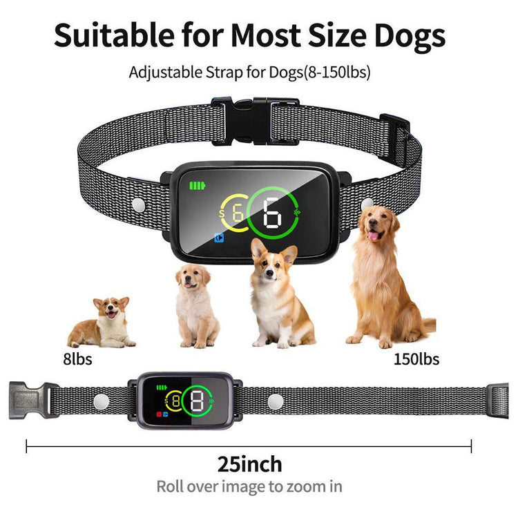 Product Description: This smart dog training collar features an upgraded design with a bright LCD display for easy visibility. It offers two training modes, beep and vibration, along with 7 adjustable sensitivity levels to customize the training experience for your dog. The collar includes a battery indicator and a low battery reminder, ensuring you are always prepared for effective training sessions. Ideal for correcting barking and other unwanted behaviors, this collar provides humane training options for dogs of all sizes.