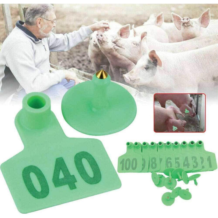 1-100 Cattle Number Ear Tag 6x7cm Set - Medium Green Sheep Livestock Label