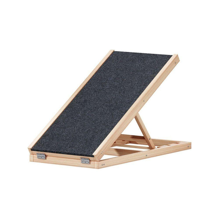 As your pets grow older, they may need help around the home to do the things they love. If you love cuddling up to your dog after a long day, you'll love the i.Pet Dog Ramp and Step. The ramp is made from solid fir wood with an anti-slip carpet mat that is easy on aching legs. With two adjustable heights, your furry friend will be able to jump on the couch, the bed or into the car with ease. The sturdy triangle-shaped structure, wide platform and smooth edges make this ramp totally safe for pets. The foldable and lightweight design makes the ramp easy to store, and you can take it with you anywhere. With a 30kg weight capacity, it is suitable for small to medium pets. Give your best friend the gift of convenience with a Dog Ramp and Step from i.Pet.