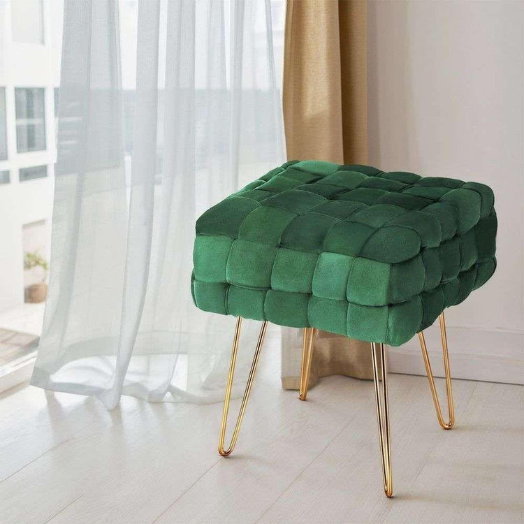 Upgrade your home decor with this gorgeous Artiss Cleo footstool. Not just the living room, you can style it in the bedroom, dressing room, kid's room or foyer. Featuring gold metal legs, this footstool is both durable and stylish. The luxurious velvet fabric provides a comfortable and inviting seating experience, while the unique woven design adds a touch of sophistication. Perfect for adding an extra seating spot in any living space, this Artiss Cleo footstool is sure to impress.