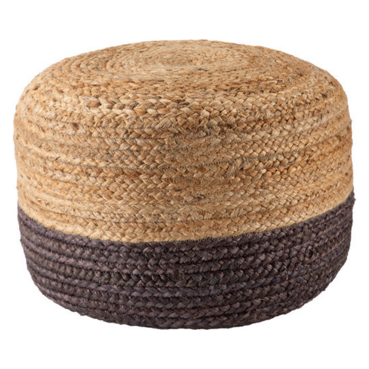 Ombre Hand Braided Jute Cotton Pouf Ottoman 50 x 35 cm (Charcoal)