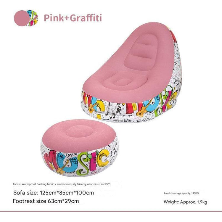 Portable Inflatable Sofa Chair with Ottoman - Waterproof Flocked Lazy Sofa