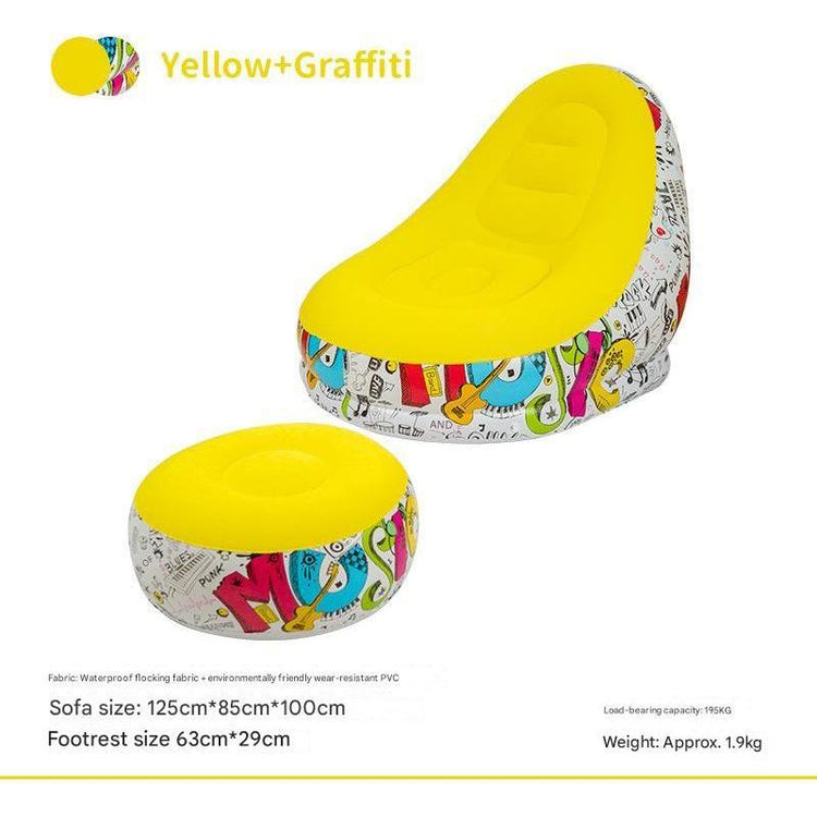 Yellow Graffiti Portable Inflatable Sofa Chair with Ottoman - Waterproof Flocked Lazy Sofa for Camping and Home Use