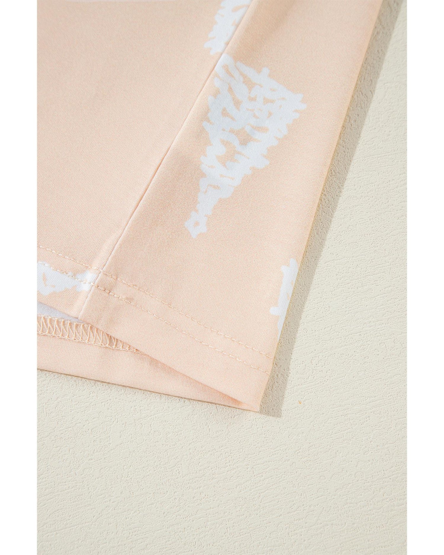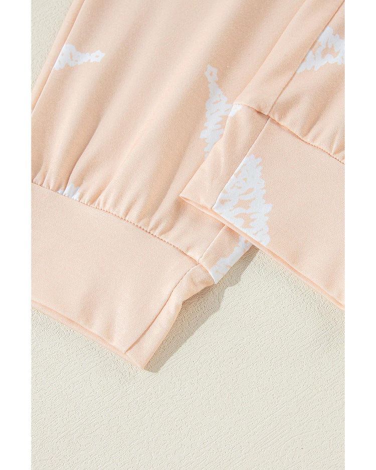 Apricot Christmas Tree Print Loose Fit Two Piece Pajama Set - L