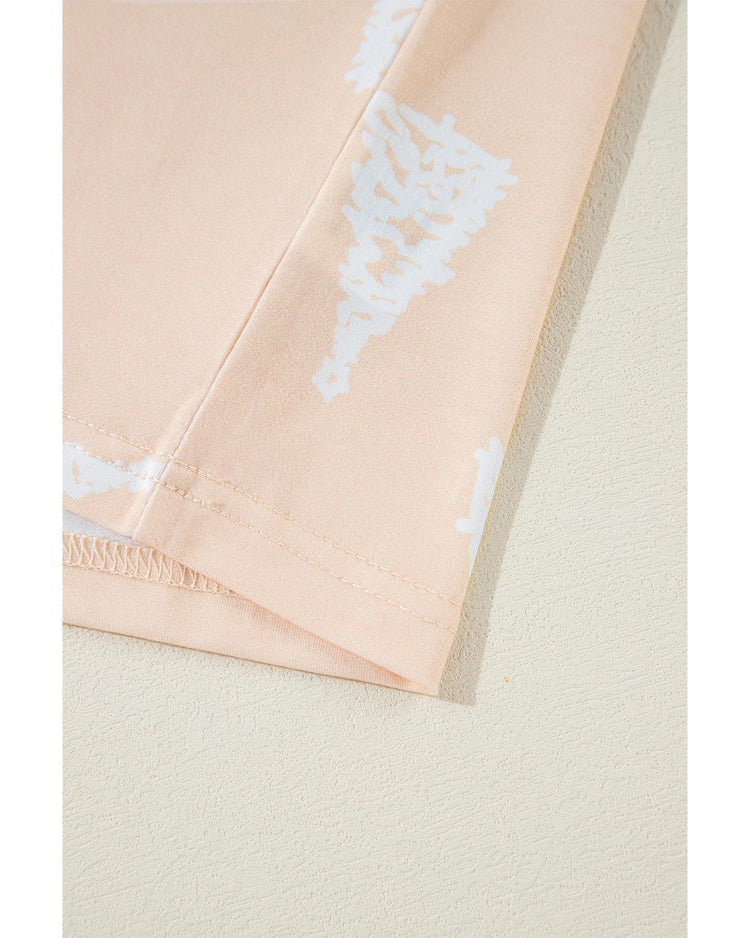 Apricot Christmas Tree Print Loose Fit Two Piece Pajama Set - M