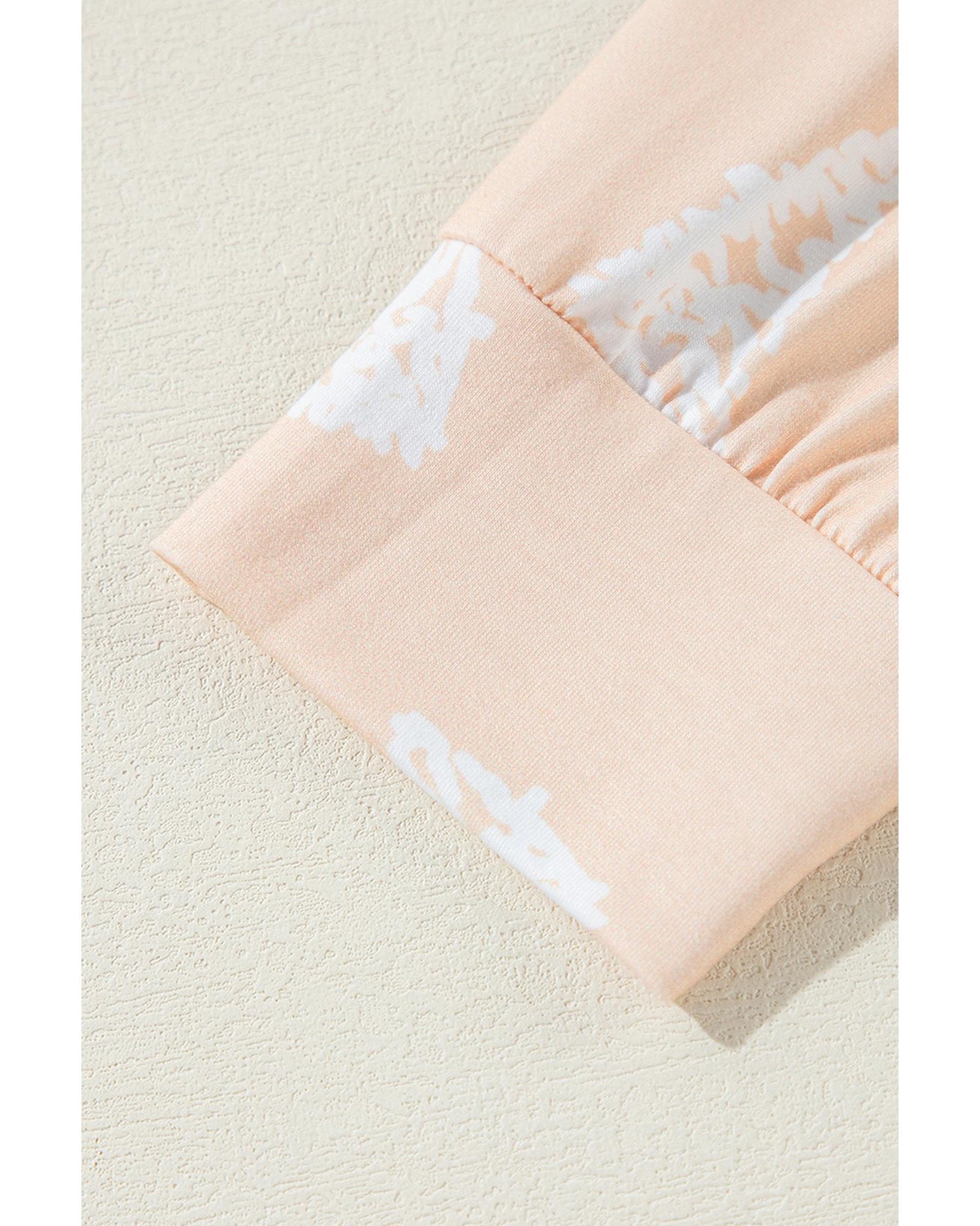 Apricot Christmas Tree Print Loose Fit Two Piece Pajama Set - XL