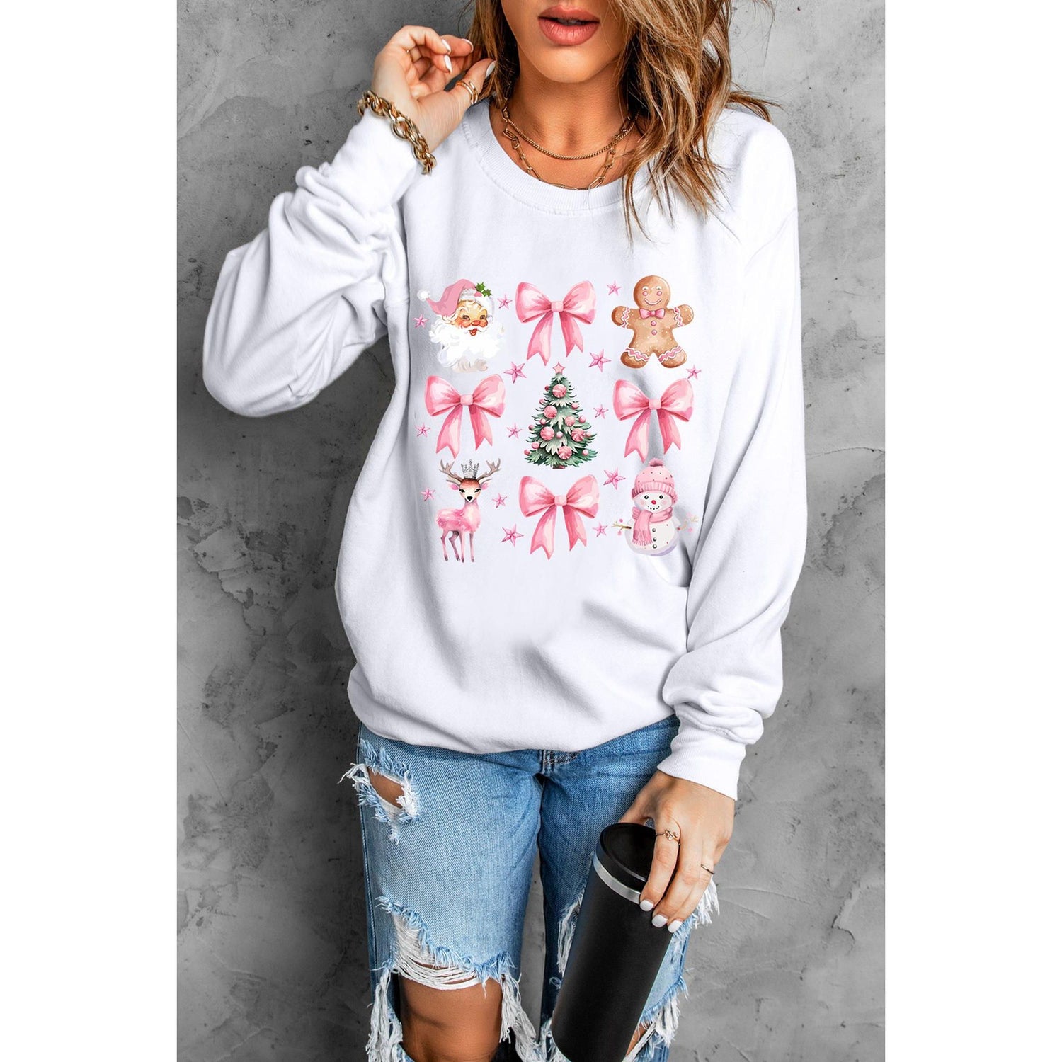 Beige Christmas Theme Pattern Pullover Sweatshirt - XL