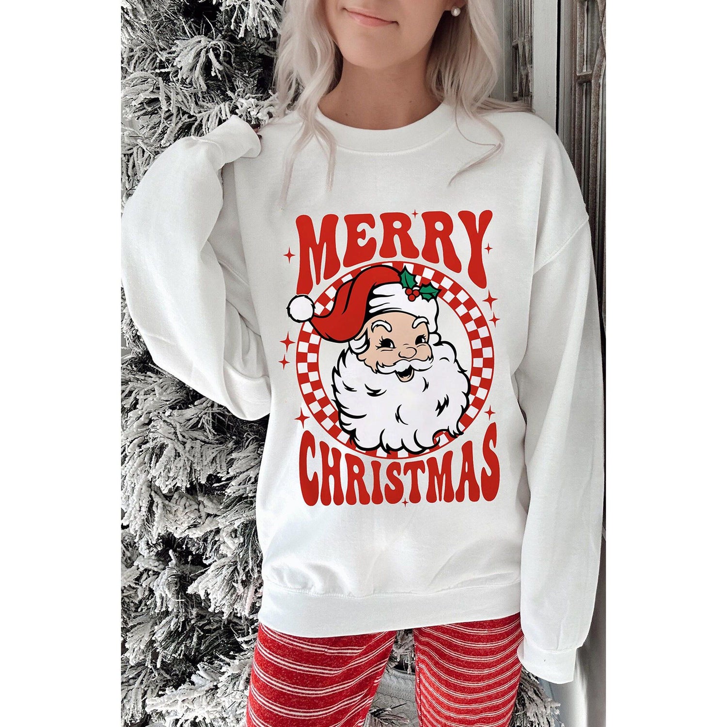 • Beige MERRY CHRISTMAS Christmas Claus Graphic Drop Shoulder Sweatshirt