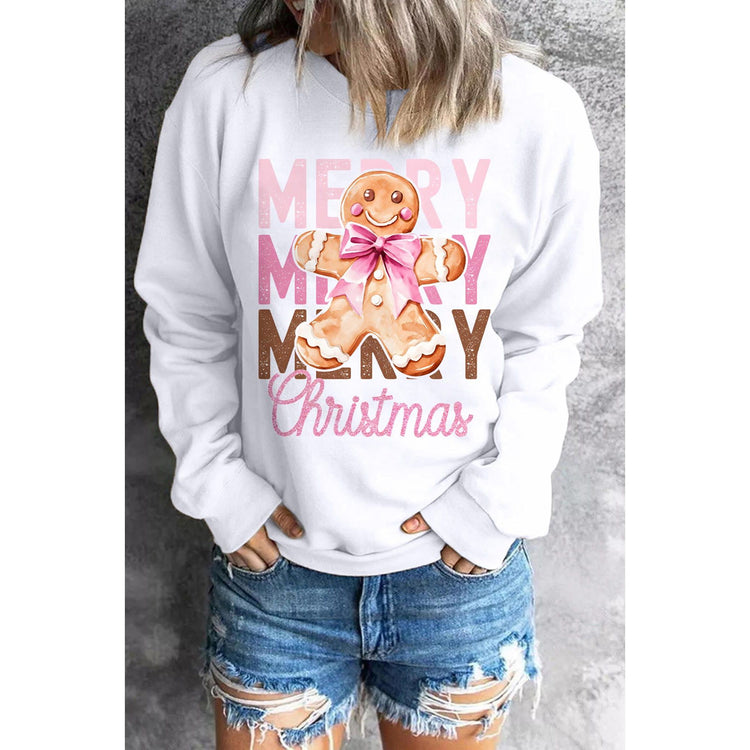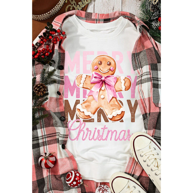 • Beige Merry Christmas Gingerbread Man Graphic Sweatshirt