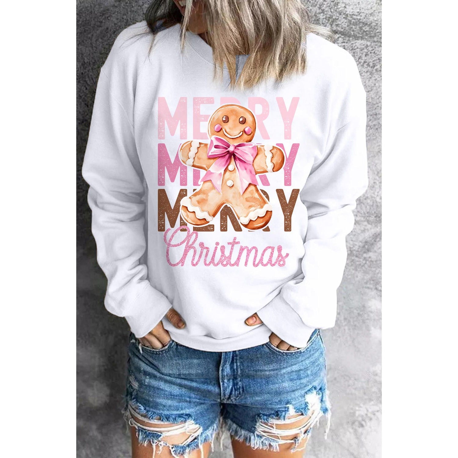 - Beige Merry Christmas Gingerbread Man Graphic Sweatshirt