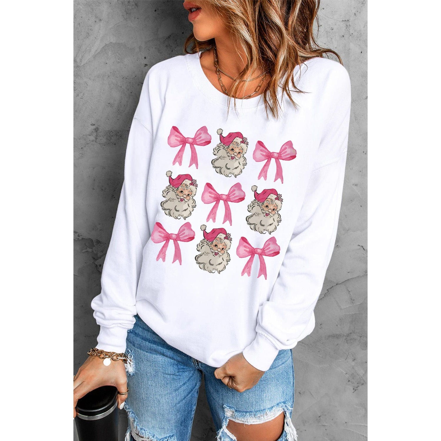 - Beige Santa Claus Bowknot Pattern Christmas Sweatshirt