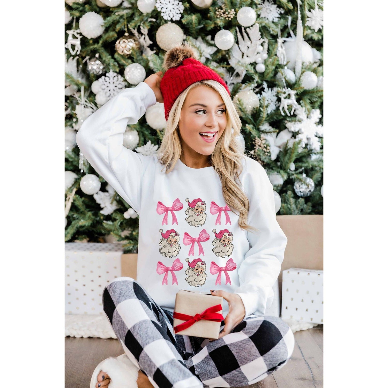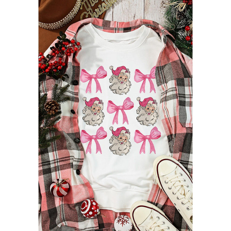 - Beige Santa Claus Bowknot Pattern Christmas Sweatshirt