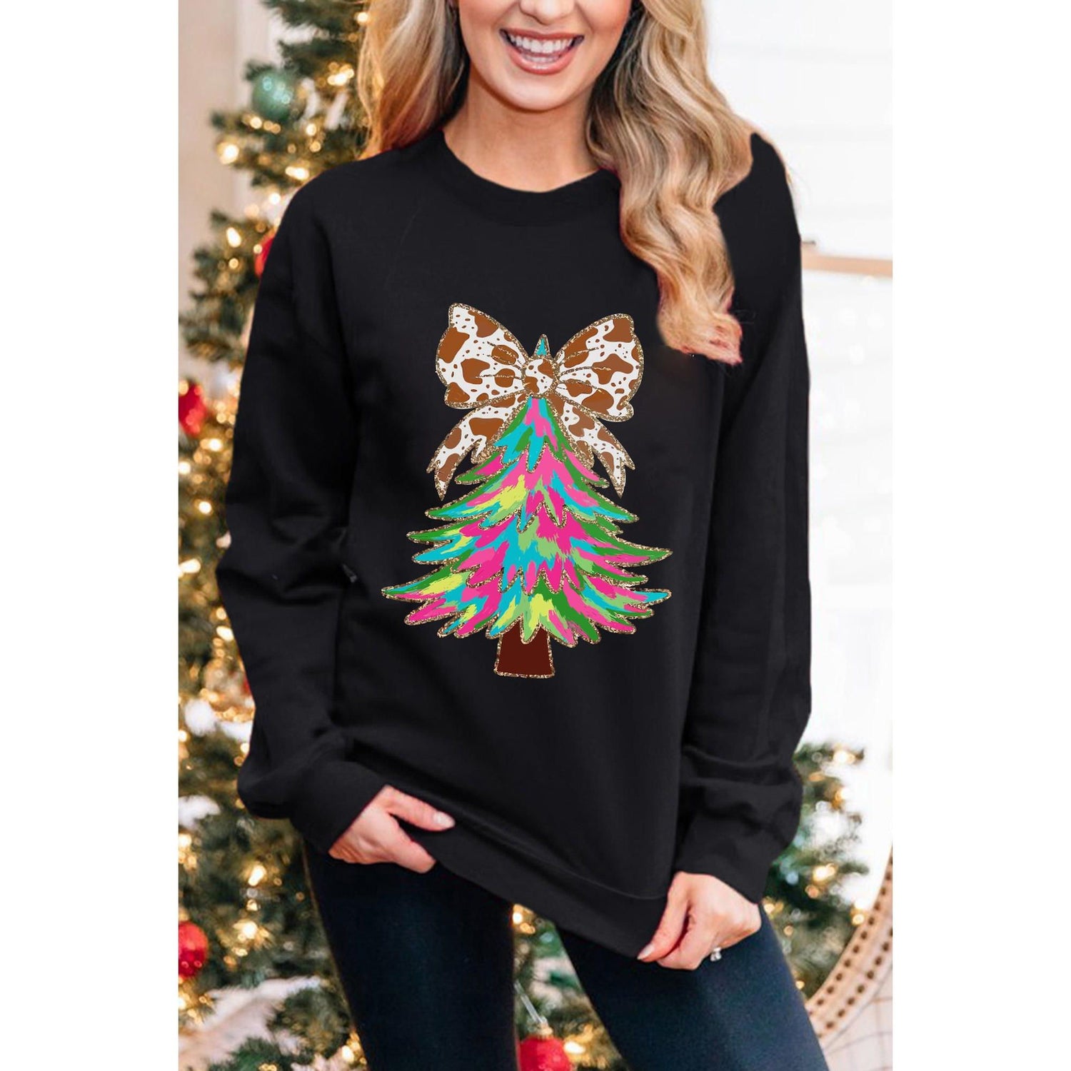 Black Bowknot Christmas Tree Shiny Graphic Sweatshirt - XL